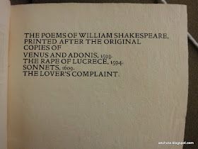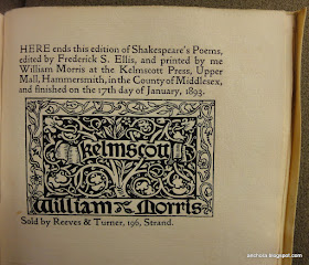 There is more--much  more--that could be said about the publication history of Shakespeare's poetry, but I'll stop here, with a teaser that if you'd like to know more about the early publication history of Venus and Adonis, and its crucial place in biographical and critical narratives of Shakespeare's career, you'll have to wait a few months until a couple of my own forthcoming articles appear, which will give you more detail than you probably want to know. Until then, the curious claims made in the Kelmscott edition of the poems have demonstrated the importance and the vitality of the continuing history of the poems' publication--a history that I'll certainly attend to more assiduously.