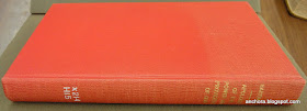 Finally, just for your enjoyment, I'll include a couple of pictures that show the subsequent history of the Hakewill book, which was altered in the mid-twentieth century in a way that doesn't quite enhance the appearance in the same way as the title-page -- a re-binding (in bright red!) with a binder's stamp worthy of the "blog" of "unnecessary" quotation marks (as opposed to necessary quotation marks):