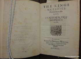 Another copy in excellent condition which, like the Hayward pamphlet, also happens to concern the monarch who took the throne in 1603, is the Declaration of Sports of King James (1618):