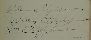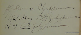 The always enlightening Mercurius Politicus has a grumpy rant about a recent mention of everyone's favorite puritan William Prynne and his grumpy rants. My favorite among MP's recent posts, though, is a moving meditation on what, exactly, signatures can tell us ("Sign of the times") which looks at Henry Walker's signature confirming his apprenticeship in the Ironmongers' Company as a young man, upon moving to London, and another in a book he donated to the Company late in his life.