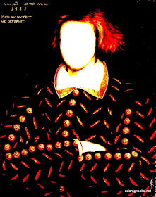 Attribution is the essential act that defines authorship, marking the transition from anonymity to public recognition. Reputations and careers are built through the addition of a name to a nameless work or artifact. This is especially crucial for Marlowe--or, rather, the Marlowe that has been constructed over the centuries, who exists more as a collection of myths than as an historical figure. The famous portrait [above] that I've de-faced here is one example among many--it suits the image we have of an attractively rebellious figure, even though it very likely isn't the historical Marlowe at all.