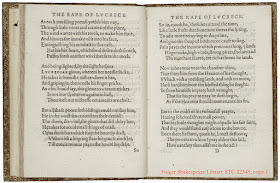 In context in Lucrece, however, the maxim means something far more sinister. The couplet concludes a stanza in which Tarquin quotes two different aphorisms that serve to strengthen his resolve to overcome the obstructions he encounters before he enters Lucrece's chamber -- where he will commit the crime that the running title on the page reiterates: "THE RAPE OF LUCRECE." You can read the passage here thanks to the Folger Shakespeare Library.