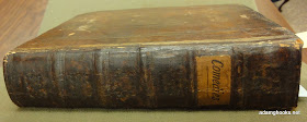 This collection is cataloged as "Comedies; a collection of plays, published separately" (catalog record here). This is the oldest collection of plays the Iowa library owns -- meaning that the included plays are older (published between 1697 and 1709) and that the binding itself is far older than the other collections (all of which are, unfortunately, rebound in those awful library bindings). The relatively narrow range of publication of the plays may indicate that this collection was put together not long after the plays were published (although I'll leave that question to the binding experts, I suppose).