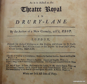 At the end of a 1706 edition of Congreve's Double-Dealer, there is a single-sheet catalogue from the famous Tonson publishing house -- and it just so happens that the play bound in after this one was also published by Tonson: