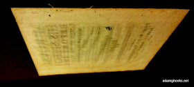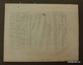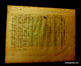 It's the final blank verso that I'm interested in, though -- and the fact that it is blank (or, nearly blank) holds the key to finding out which pamphlet it was once bound with. Remember the ghost image left on the verso of one of the blank A1 pages? One of those initial blanks was moved around and inserted in the wrong place; however, you can still discern traces of the title-page on its verso, a result of prolonged contact in which the ink transfers, ever so slightly, to the verso. And as luck would have it, that's also exactly what happened with the final verso in the Laud pamphlet. I've toyed around with a couple of the images so you can get a better look than you would with the naked eye: