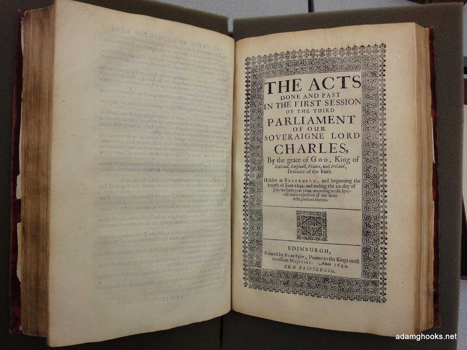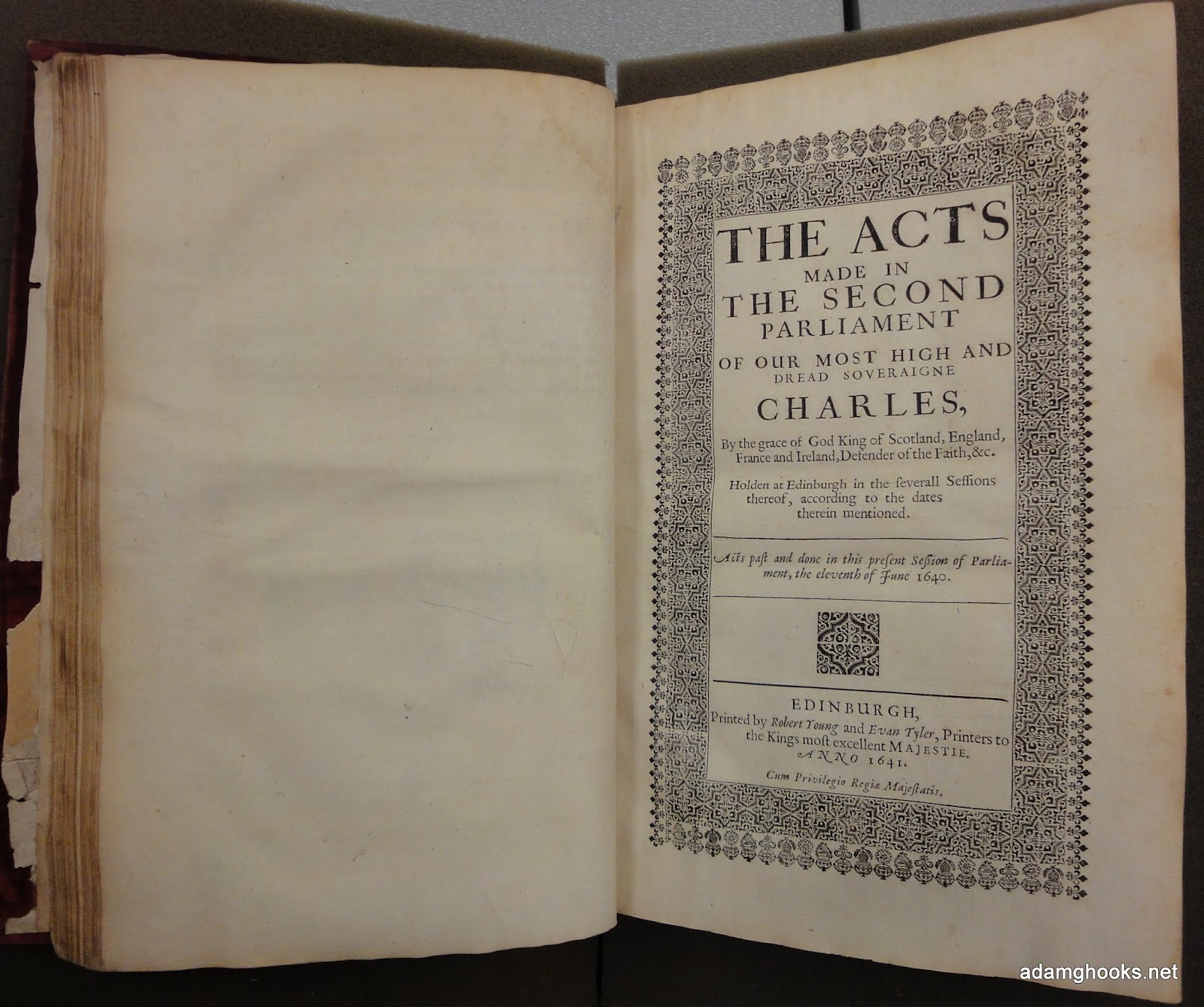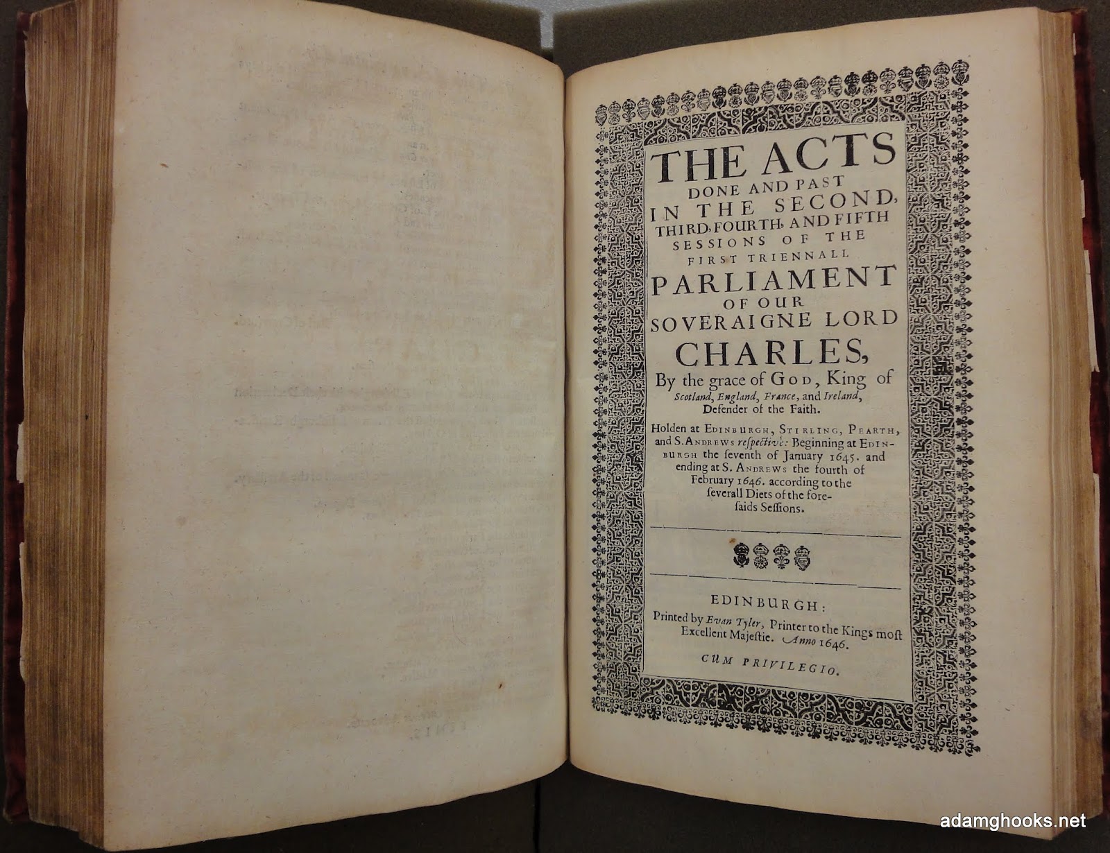 Here you can see the title-pages of each distinct set of acts, with the date of publication in the caption -- notably, like several of the pamphlets I've looked at recently, they were all published in Edinburgh: