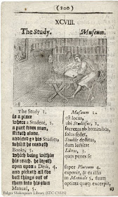This Renaissance study looks familiar in many ways: the student sits, isolated from all potential distractions, alone in a dark room, reading his books (whether being "addicted" to your studies is a good or a bad thing is up to you -- and it's probably a fair measure of both). He -- and as the phrase "a part from men" shows, the early modern student was almost exclusively male -- does not merely read, though, for there is a multi-step process that he must undertake.