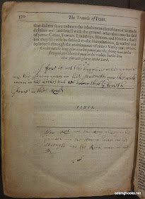 The intent of the book, then, is to provide practical aids to readers detailing the geography of the scriptures, and explaining the various units of measure and currencies in the scriptures by translating them into values the English reader could understand. If the owners and readers of this copy used it for that purpose, they left no visible evidence. At some point, though, someone did use the book to preserve that flower. This is not an uncommon occurrence--readers left all sorts of objects in their books, purposefully and carelessly--which points to the little known fact that a true bibliographer needs to have a working knowledge of botany.