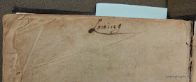 "Loving" -- why "Loving"? This is the spot where you would expect to find a mark of ownership, and that's what "Loving" might be in this instance: Loving (or various variants thereof) is an established surname in England. So there you have it: three completely common ways to use a book -- as a storage container of sorts, in this case to press a flower; as handwriting practice; and to mark one's ownership -- which, taken together, make this a suggestively lovely book.