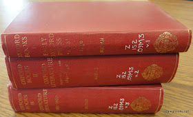 Madan's Early Oxford Press was actually the first volume in what would ultimately become a 3-volume set called Oxford Books: A Bibliography of Printed Works relating to the University and City of Oxford or Printed or Published There (1895-1931). Neither of the later two volumes include any rare materials, nor do reprints of the first volume included in the complete set. This makes The Early Oxford Press a fragment of another sort -- and it's also how I initially overlooked one of the copies of Madan's book shelved on the open stacks. So to conclude here, I've inserted images of the gap in the stacks where one of the stand-alone copies was removed (which itself was part of a larger series of Oxford Historical Society volumes); a side-by-side comparison of this (blue-bound) volume with another (red-bound) stand-alone volume; and the complete 3-volume set, including a reprint of vol. 1, without any rare material: